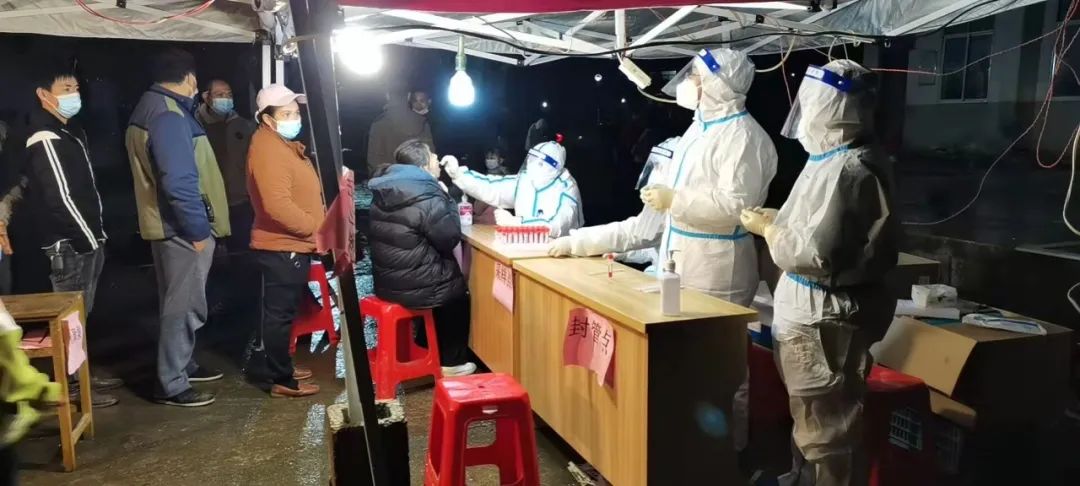 经管学院人力20-3班谭家宜、轨道运管20-2班班长蒲章在百色市德保县的核酸采样点