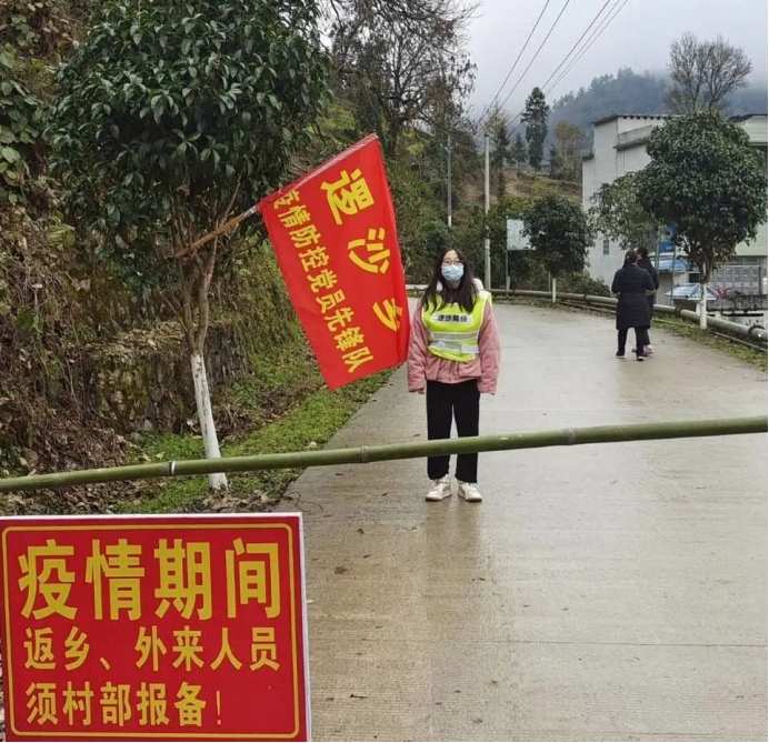 21级生物技术张艳琴在乐业县逻沙乡疫情防控卡口值守