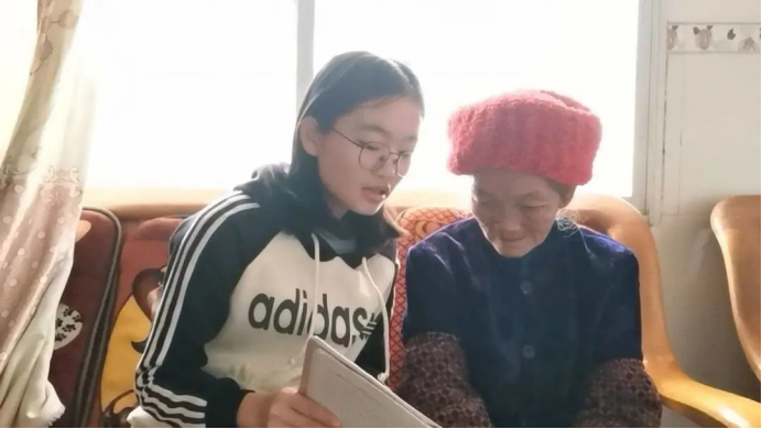 19级生物科学四班张春香在德保县的家中陪伴处于居家隔离状态的奶奶
