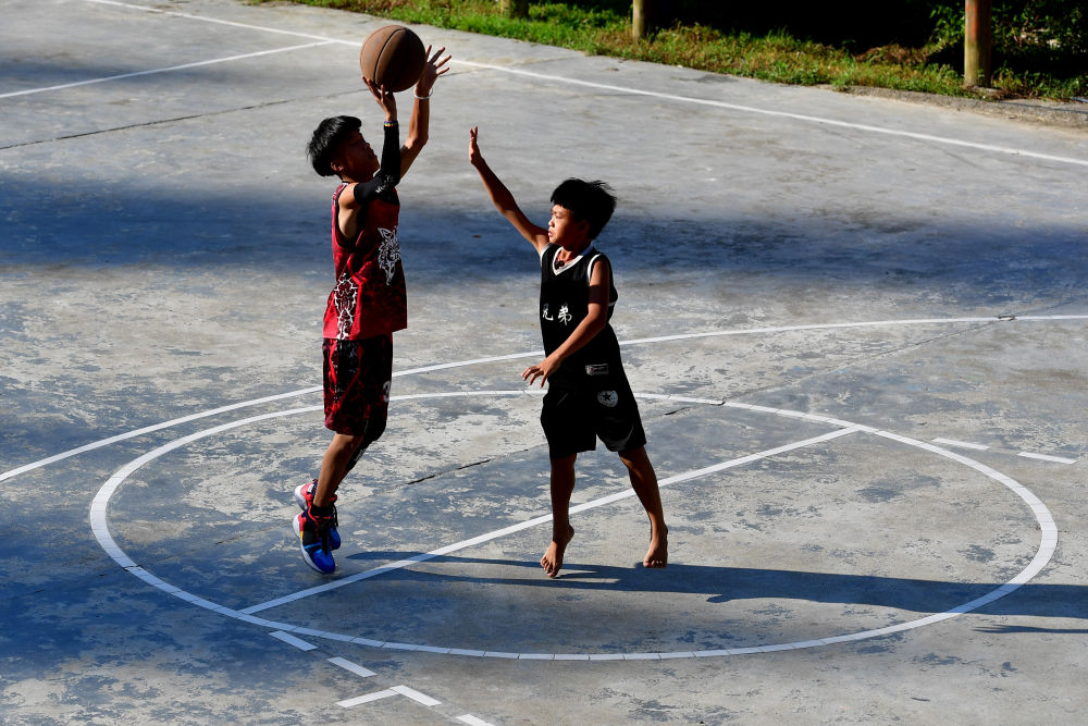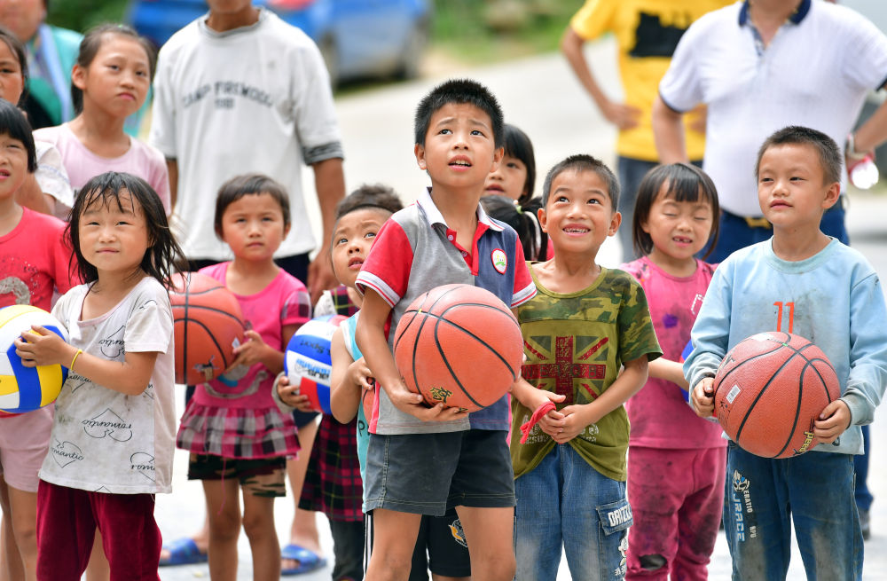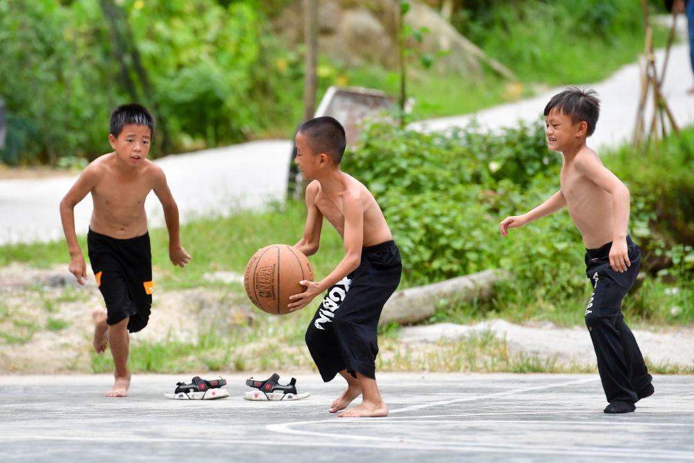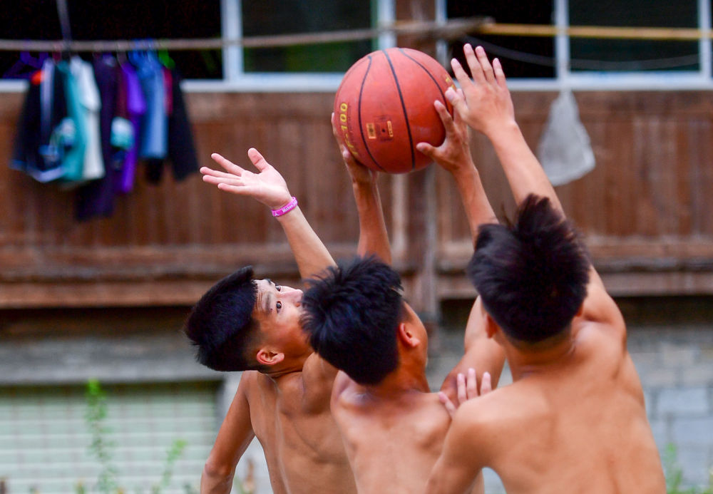 2020年8月6日,小学生在桂黔乌英苗寨打篮球