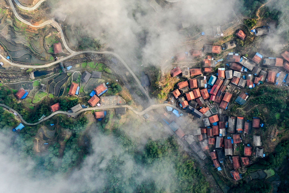 这是2023年2月12日无人机拍摄的桂黔乌英苗寨