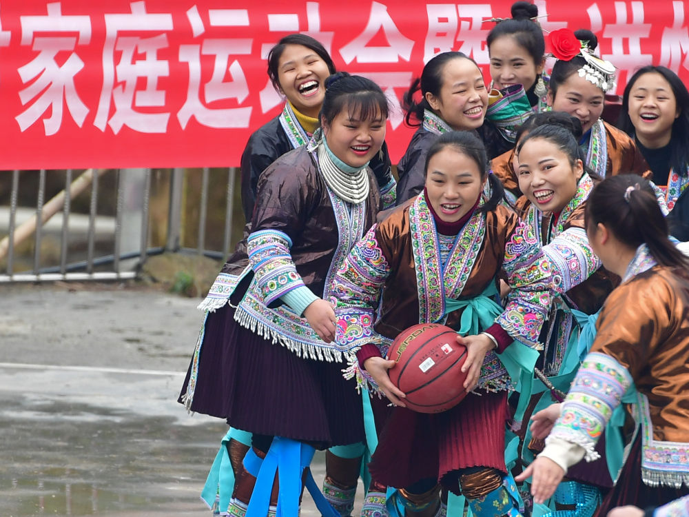 2019年12月25日,桂黔乌英苗寨妇女参加趣味篮球比赛