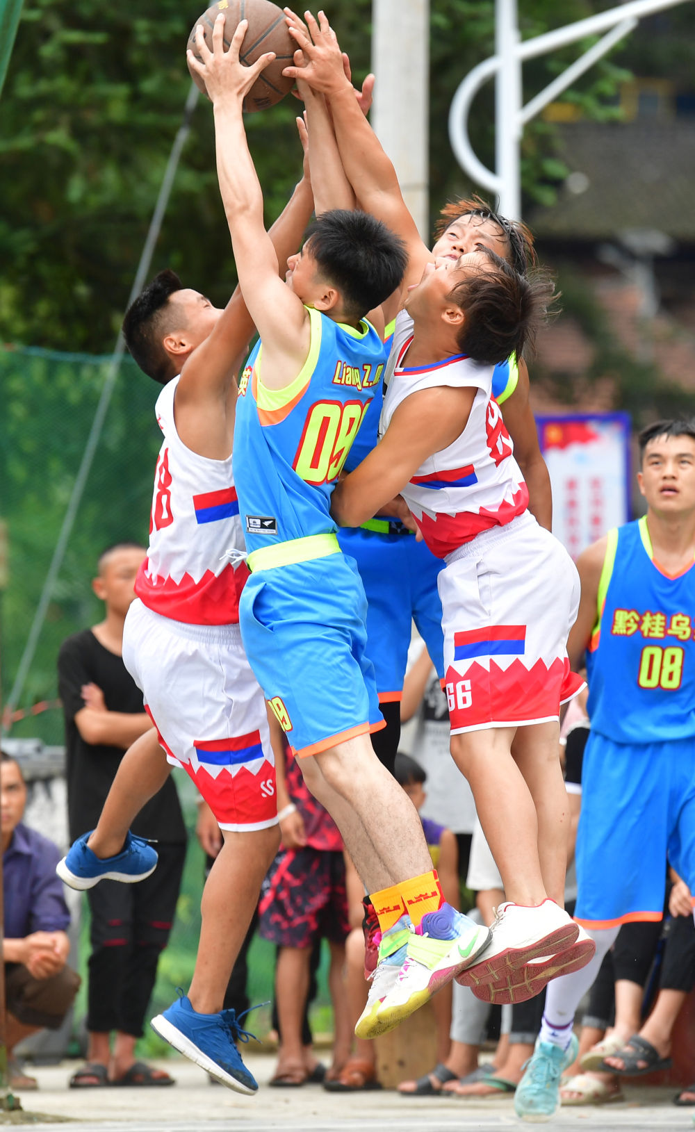 2019年7月19日,桂黔乌英苗寨村民打篮球欢度新禾节