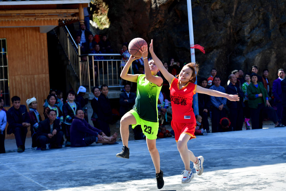 2019年2月6日,桂黔乌英苗寨村民在春节期间打篮球