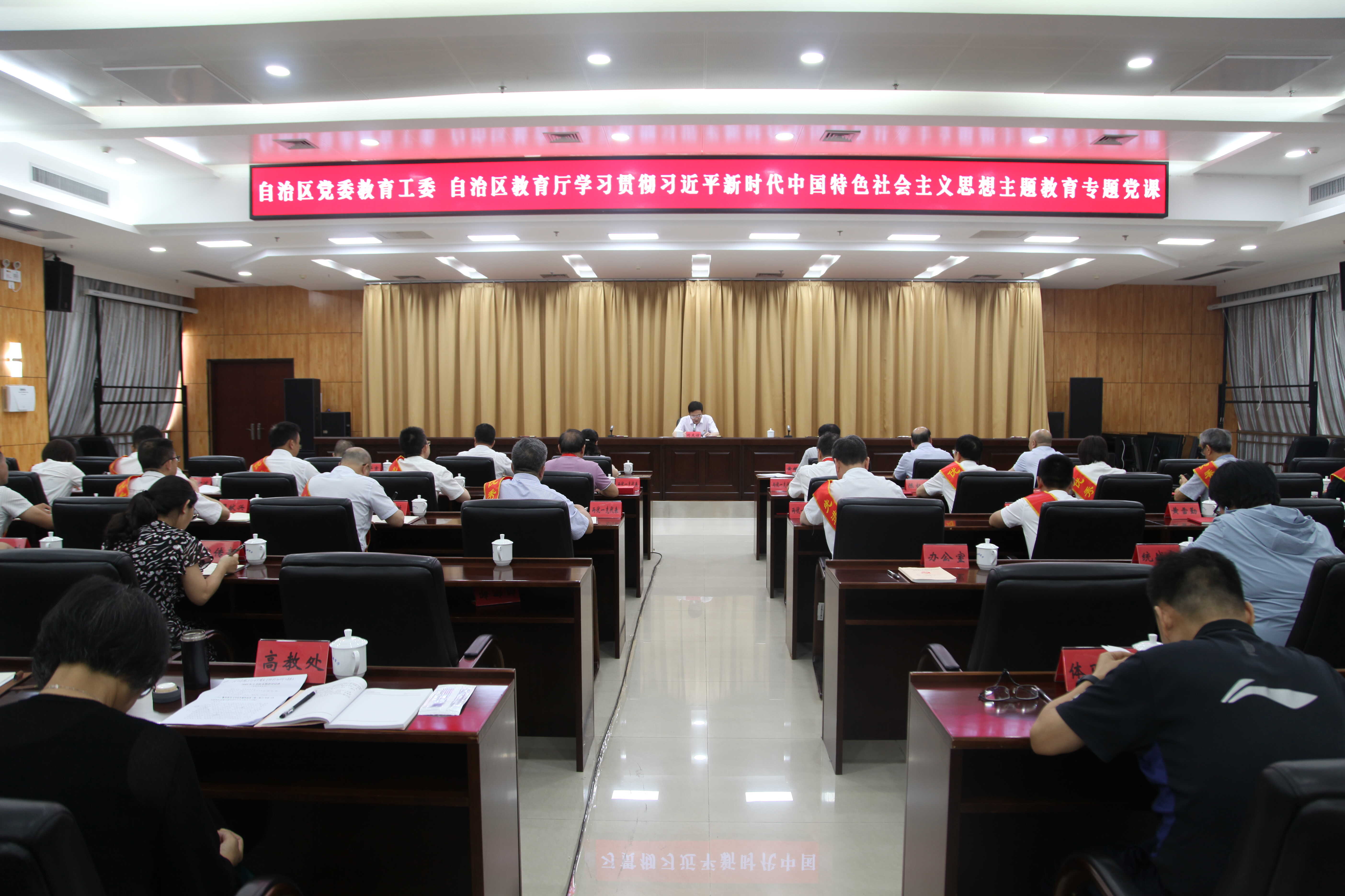 6月28日,自治区党委教育工委 自治区教育厅召开“七一”主题党日活动暨“两优一先”表彰大会。自治区党委教育工委副书记,自治区教育厅党组书记、厅长刘友谊以“深入学习贯彻习近平总书记关于教育强国的重要论述,加快建设我区高质量教育体系”为题,为委厅机关全体党员上专题党课。