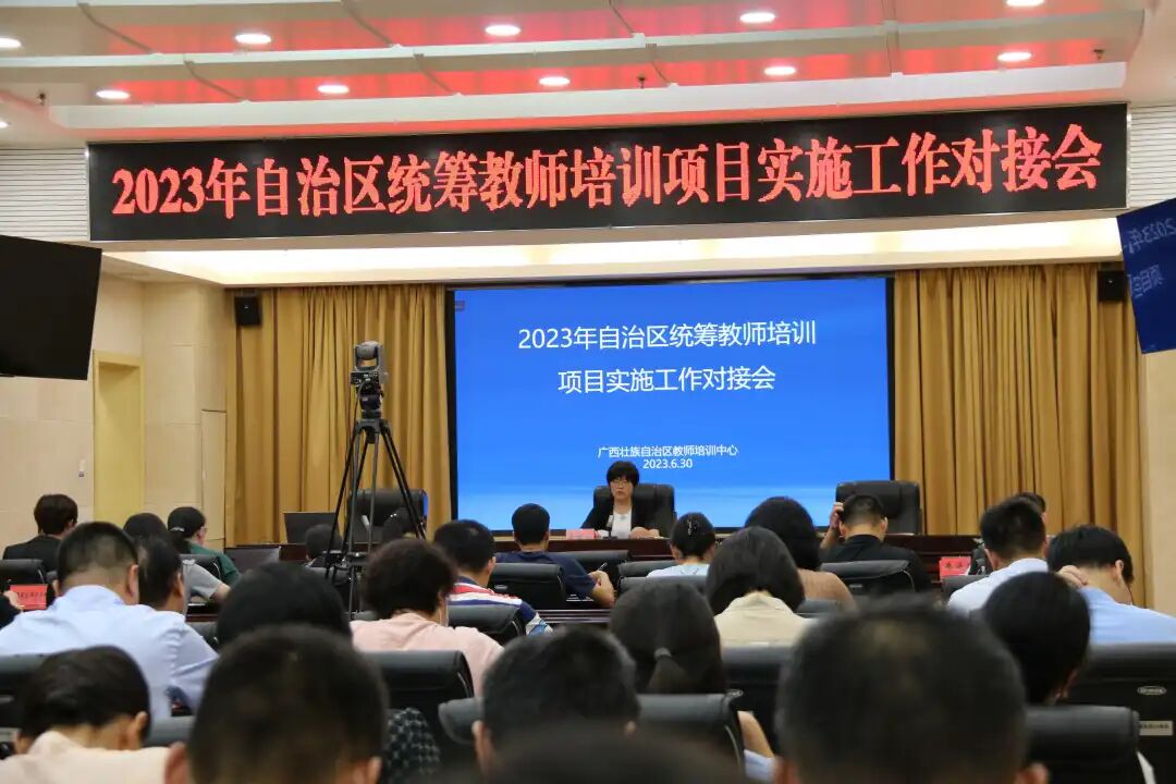 6月30日,2023年 “国培计划”自治区统筹项目和职业院校教师素质提高计划项目实施工作对接会(以下简称“对接会”)在南宁召开,会议回顾了2022年自治区统筹项目实施工作情况及其成效,指出了教师培训高质量发展面临的主要问题,部署了2023年自治区统筹项目实施重点工作。
