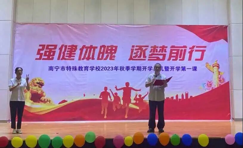 8月28日,南宁市特殊教育学校举行“强健体魄,逐梦前行”秋季学期开学典礼暨开学第一课。