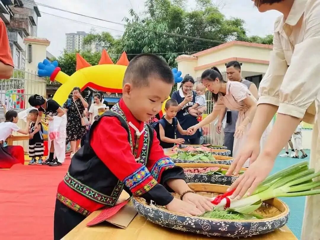 贵港市平南县平南街道罗井幼儿园以“传承民族文化,德育浸润童心”为主题,以具有传统民族风格的布置迎接孩子入园。