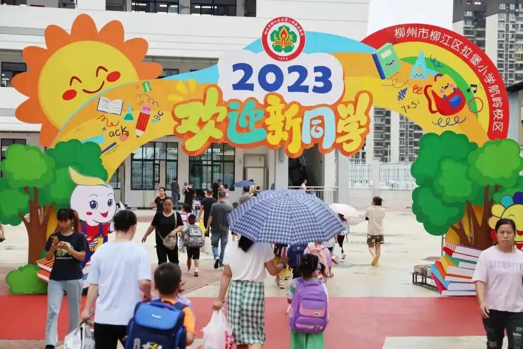 在老师的迎接和家长的陪伴下,柳州市柳江区拉堡小学教育集团航岭校区第一批学生陆续到校,满怀期待地踏入新校园。