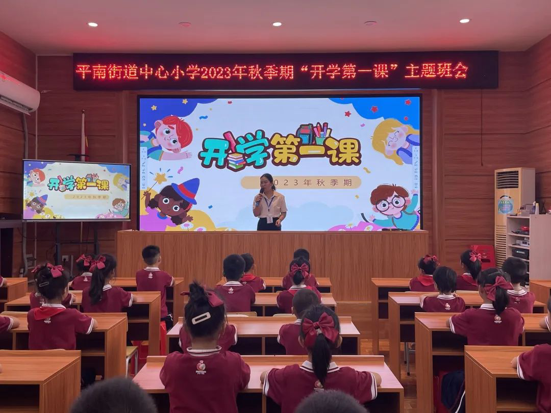 贵港市平南县平南街道中心小学《开学第一课》主题班会,加强对师生的爱国主义教育、卫生健康、安全教育、心理健康等教育工作。