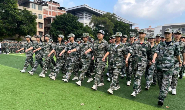 柳州铁二中学的新生学子们迎来了军训,同学们精神饱满,动作整齐。