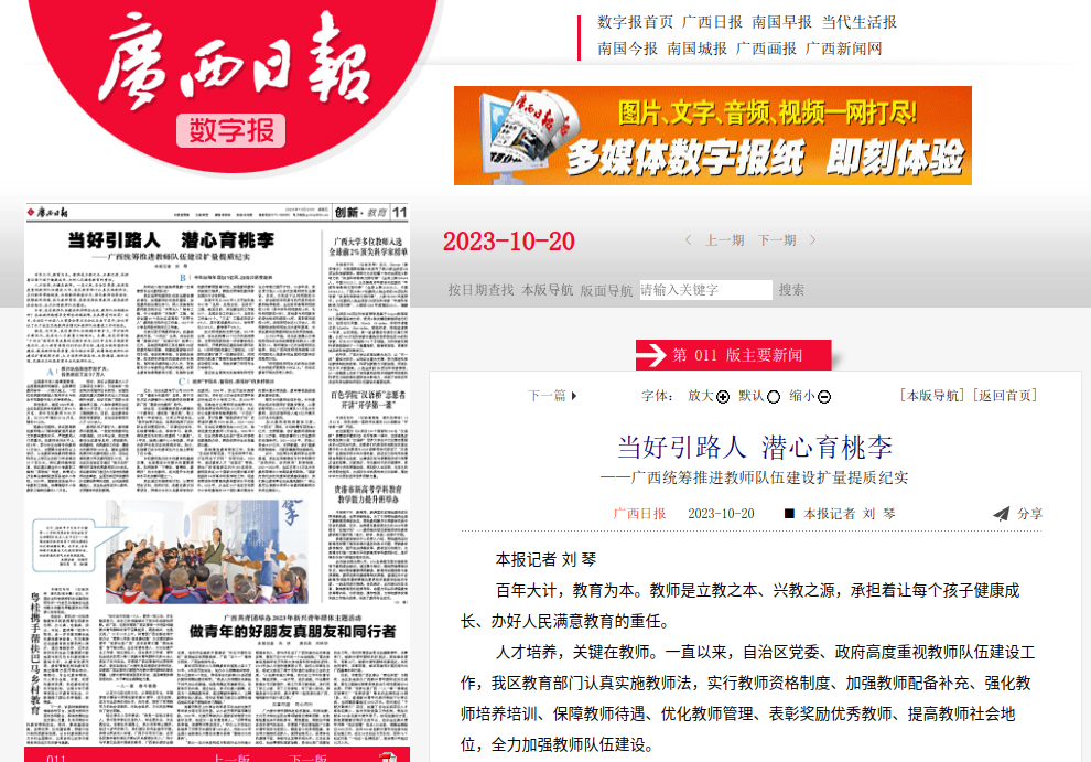 全国教书育人楷模莫振高、全国最美教师范徽丽、全国模范教师徐华……八桂大地上,一位位优秀教师典型人物用汗水与热血书写着教书育人的神圣使命。