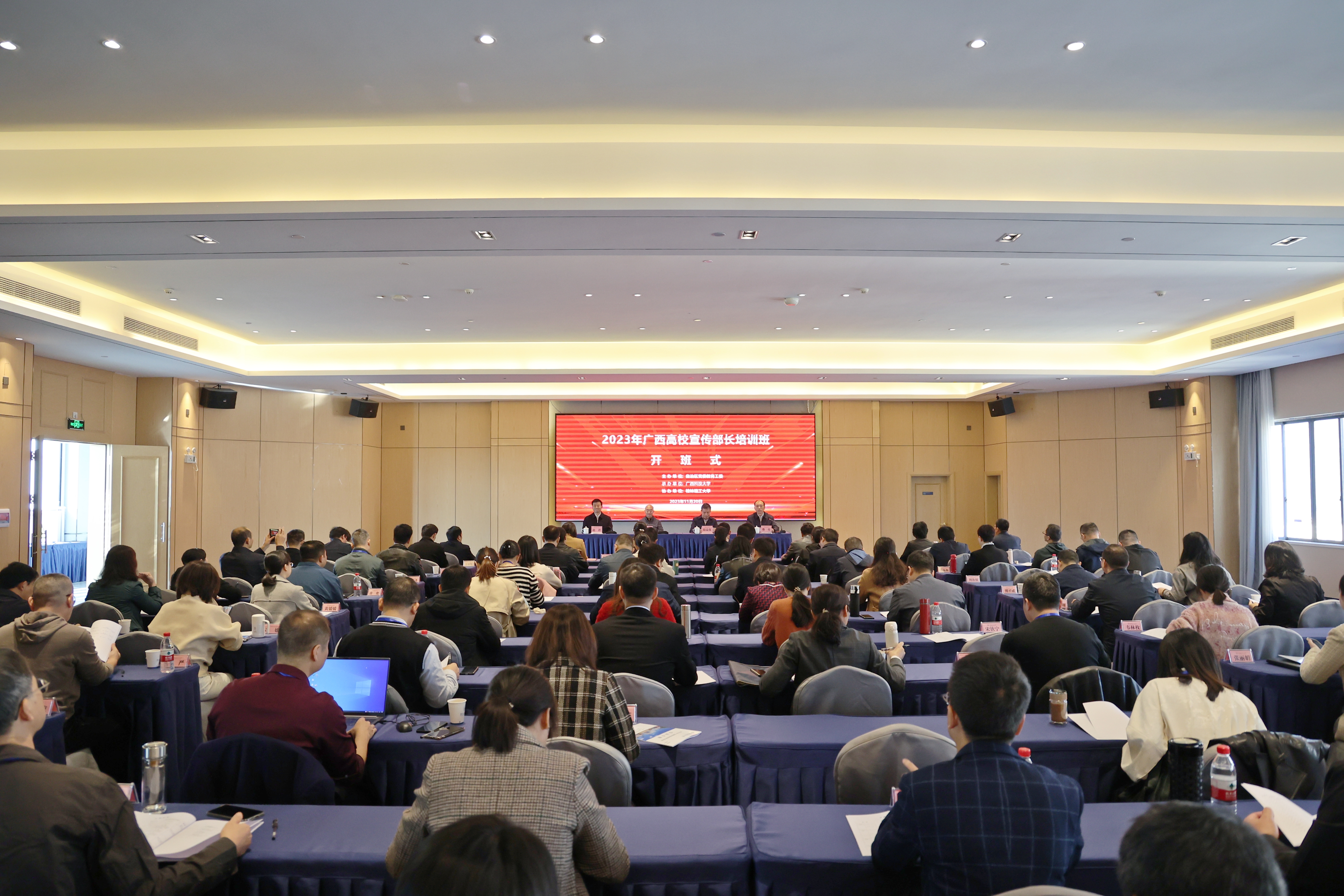 为深入学习宣传贯彻习近平新时代中国特色社会主义思想特别是习近平文化思想,贯彻落实全国、全区宣传思想文化工作会议精神,进一步提升我区高校宣传思想文化工作队伍的政治素养、理论水平和业务能力,11月20日—24日,由自治区党委教育工委主办,广西科技大学承办,桂林理工大学协办的2023年广西高校宣传部部长培训班在桂林市全州县举行。自治区党委教育工委有关处室负责同志出席开幕式并就近期全区高校宣传思想文化工作提出工作要求。