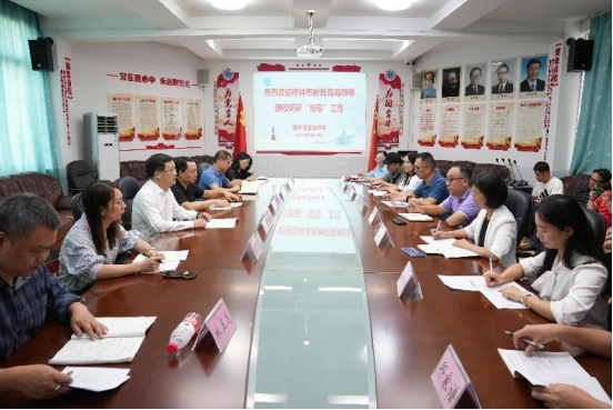 图为桂林市教育局局长唐标明在市逸仙中学与学校班子谈心谈话交流