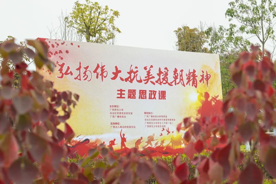 为深入学习贯彻习近平新时代中国特色社会主义思想,用好红色资源,弘扬以伟大建党精神为源头的中国共产党人精神谱系,着力培养担当民族复兴大任的时代新人,11月30日,由自治区党委党史研究室、广西师范大学和广西广播电视台联合主办,广西出入境边防检查总站特别支持的“弘扬伟大抗美援朝精神主题思政课”在广西师范大学雁栖湖畔杏坛顺利开讲。广西师范大学党委书记贺祖斌出席活动并致辞,抗美援朝老兵袁明光、庞传智,自治区党委党史研究室宣传教育处处长张丽红,全国移民管理机构第二届“十大国门卫士”荣誉称号获得者黄日等,共同讲述抗美援朝的光辉历史和志愿军战士的英雄故事,以及分享了学习体会。近1.3万名广西师范大学师生与广西出入境边防检查总站的民警代表线上线下同步参与学习。