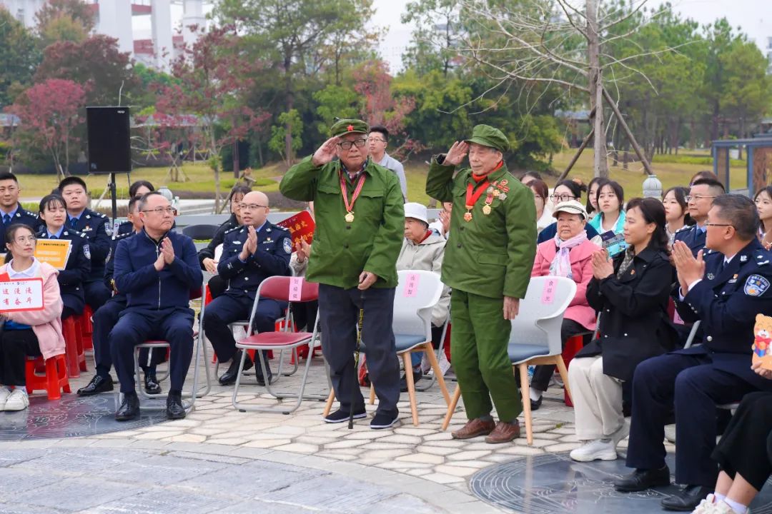 现场采访抗美援朝志愿军老兵代表袁明光、庞传智 在访谈环节,老兵代表、广西师范大学退休教师袁明光、庞传智结合参与抗美援朝的亲身经历,将一个个保家卫国的革命故事娓娓道来。虽然已分别是85岁和92岁高龄,但讲起战场上的故事,仍然神采奕奕,一字一句铿锵有力。现场师生被两位老兵的讲述感动得热泪盈眶,热烈的掌声久久回荡。