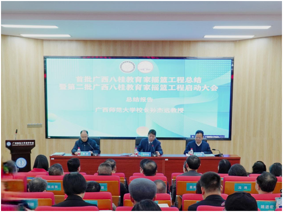 2024年1月31日,首批广西八桂教育家摇篮工程总结暨第二批广西八桂教育家摇篮工程启动大会在广西师范大学顺利举行。自治区教育厅副厅长伍锦昌,项目首席专家、广西师范大学校长孙杰远出席会议并讲话,两批广西八桂教育家摇篮工程98名成员参加大会。