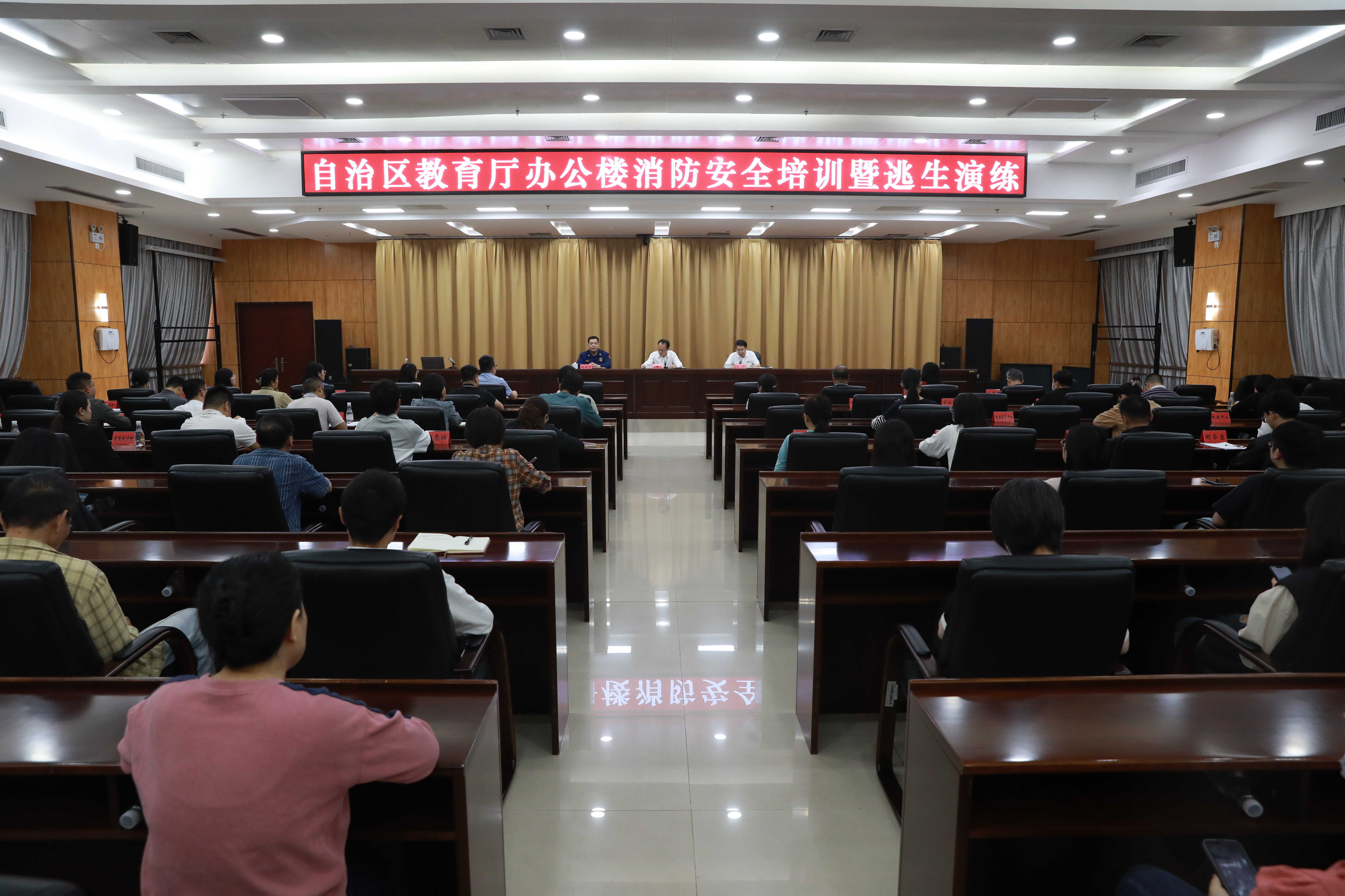 近日,自治区教育厅开展机关消防安全培训暨逃生演练。南宁市消防救援支队杨继亮工程师一行受邀到自治区教育厅培训指导,给全体干部职工进行消防知识培训。