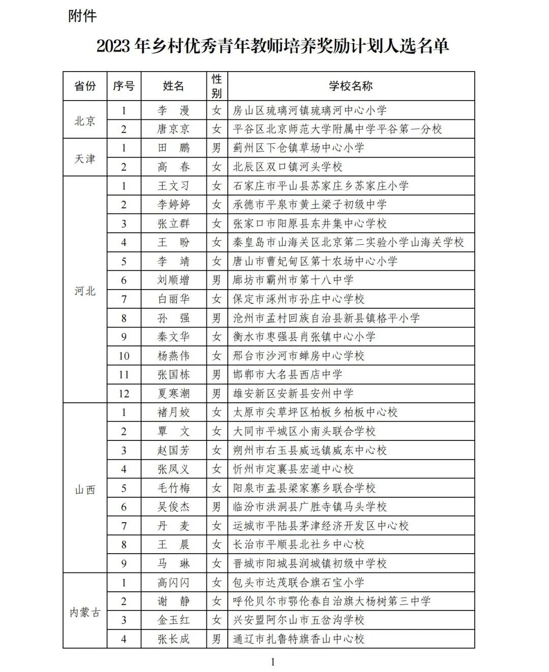 教育部教师工作司、中国教师发展基金会继续实施2023年乡村优秀青年教师培养奖励计划,经省级教育行政部门推荐、资格审查、集中评议、公示等环节,最终确定2023年乡村优秀青年教师培养奖励计划入选教师299人。一起来看名单。