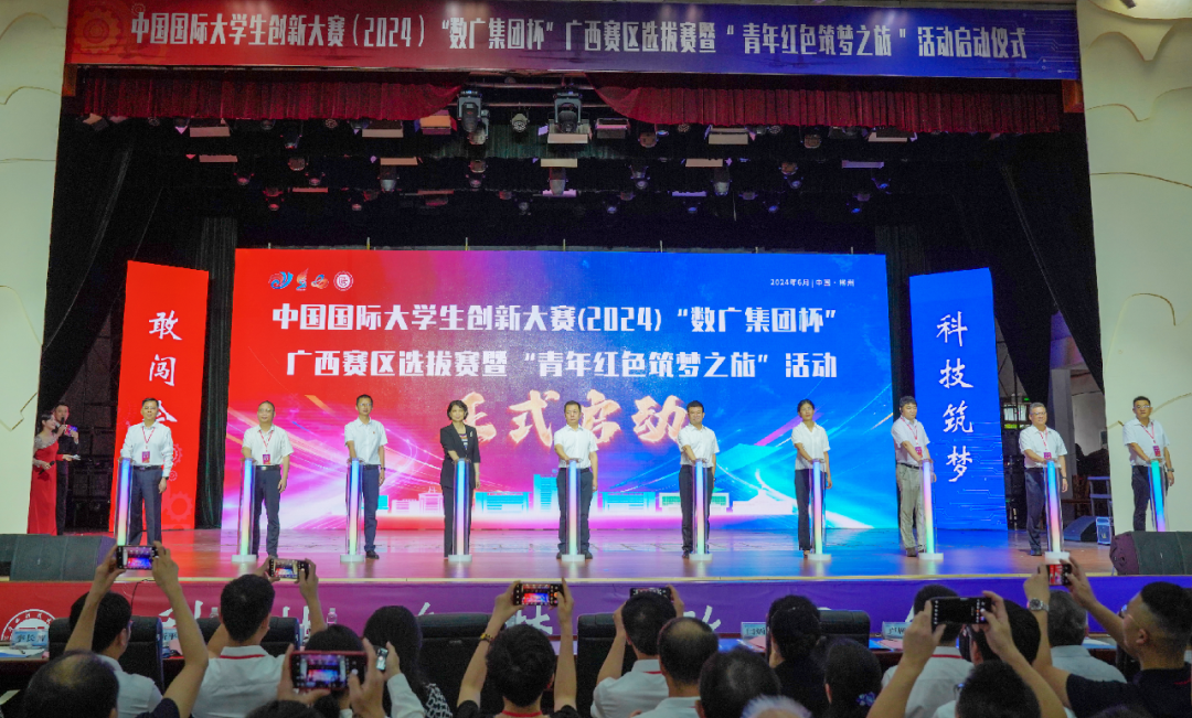 近日,中国国际大学生创新大赛(2024)“数广集团杯”广西赛区选拔赛暨“青年红色筑梦之旅”活动启动仪式在广西科技大学举行。自治区教育厅党组副书记、副厅长闫炳辰,柳州市副市长卢柳屏,广西科技大学党委书记赵君等领导出席启动仪式并讲话。