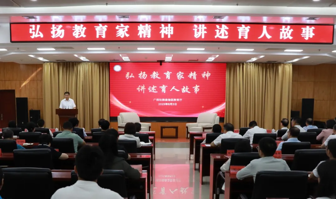为庆祝第41个教师节,9月5日上午,由自治区教育厅主办的“弘扬教育家精神,讲述育人故事”活动在南宁举行。活动采取线上线下结合的方式进行,自治区教育厅党组成员、副厅长潘旭阳出席活动并致辞。