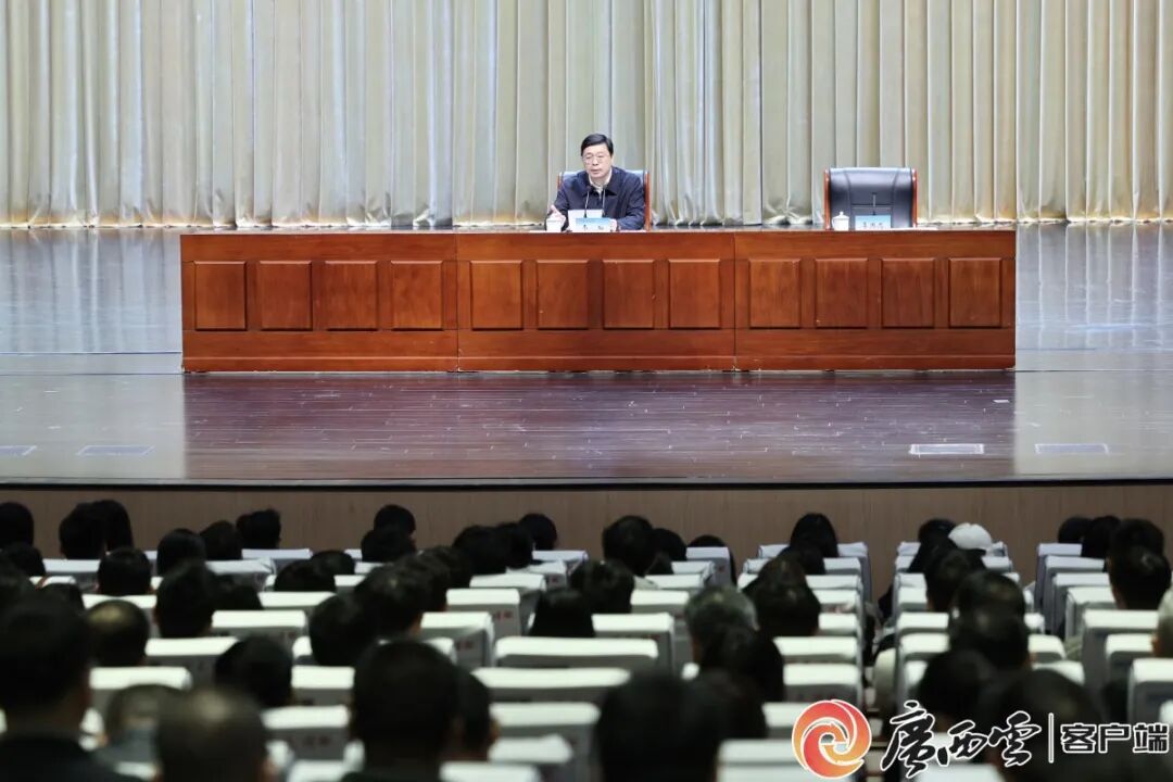 近日,自治区主席韦韬来到广西大学,向师生代表宣讲党的二十届四中全会精神并讲授思政课,调研学校人工智能研发、学科建设等工作情况。