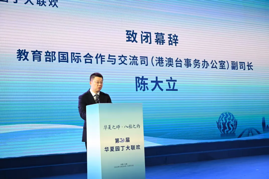 陈大立对活动的成功举办表示祝贺。他指出,华夏园丁大联欢活动是联结华夏儿女教师情感、促进教育交流互鉴的重要平台。本届活动以“华夏之师·八桂之约”为主题,在开放包容、民族团结的广西举行,为各地教师代表提供了一次沉浸体验、深化交流的宝贵机会。大家在参访中见证发展、在交流中碰撞思想、在文化中浸润心灵,共同经历了一段知行并进、情理交融的深刻旅程。面向“十五五”规划开局之年,希望全体教师坚定理想信念、涵养道德情操、夯实扎实学识、永葆仁爱之心,争做教育改革的奋进者、学生成长的引路人,以教育的智慧和力量助力强国建设。