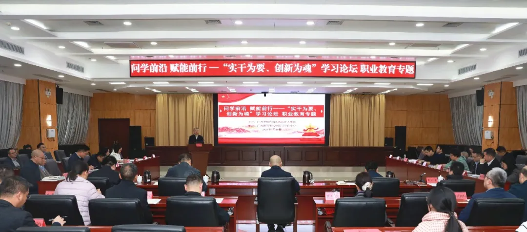 近日,自治区教育厅举办第七期“实干为要、创新为魂”学习论坛,以“聚力‘新双高’,加快我区现代职业教育体系建设”为主题,深入学习贯彻党的二十届四中全会精神与习近平总书记关于教育的重要论述和关于广西工作论述的重要要求,紧扣教育强区建设部署,结合广西实际,共同探讨如何以办学能力高水平与产教融合高质量为双轮驱动,系统谋划和加快推进我区现代职业教育体系建设。