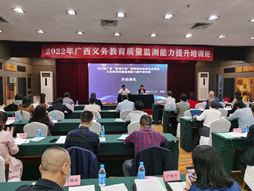 2022年11月11至16日,由自治区教育质量监测中心主办、自治区教师培训中心承办的2022年全区义务教育质量监测能力提升培训班(第一期)在江苏省苏州市成功举办,南宁、桂林等7个设区市及所辖部分县(区、市)分管或负责教育质量监测工作的领导,以及督导、教研、质量监测等部门的负责同志和部分基础教育质量监测专家共54人参加了培训。