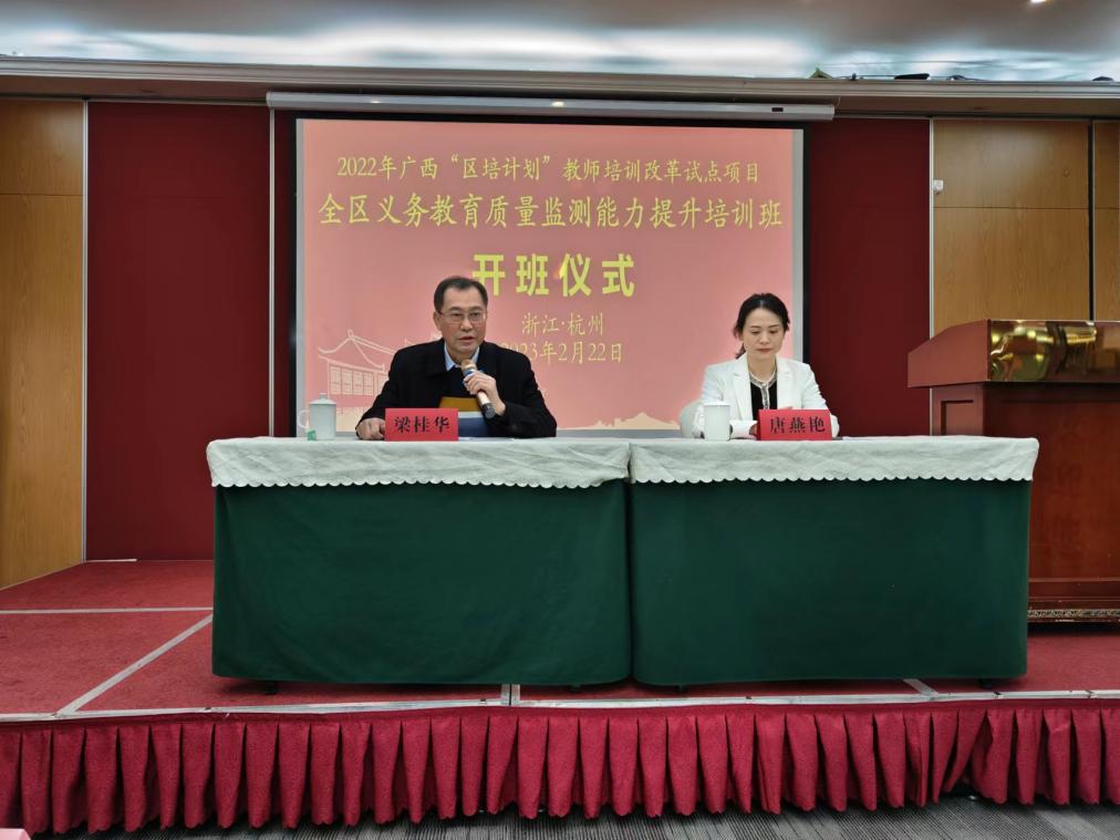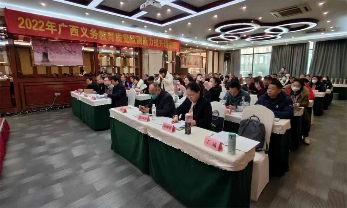 由自治区教育质量监测中心主办、自治区教师培训中心承办的2022广西“区培计划”教师培训改革试点项目——全区义务教育质量监测能力提升培训班()202322126日在浙江杭州市成功举办自治区教育质量监测中心主任梁桂华同志在开班仪式上阐述了教育质量监测的重要意义和此次培训的目的,强调要牢牢抓住教育改革发展机遇,深入学习和准确把握教育科学发展观的内涵,努力深化教育评价改革,以监测数据驱动,赋能教育高质量发展。