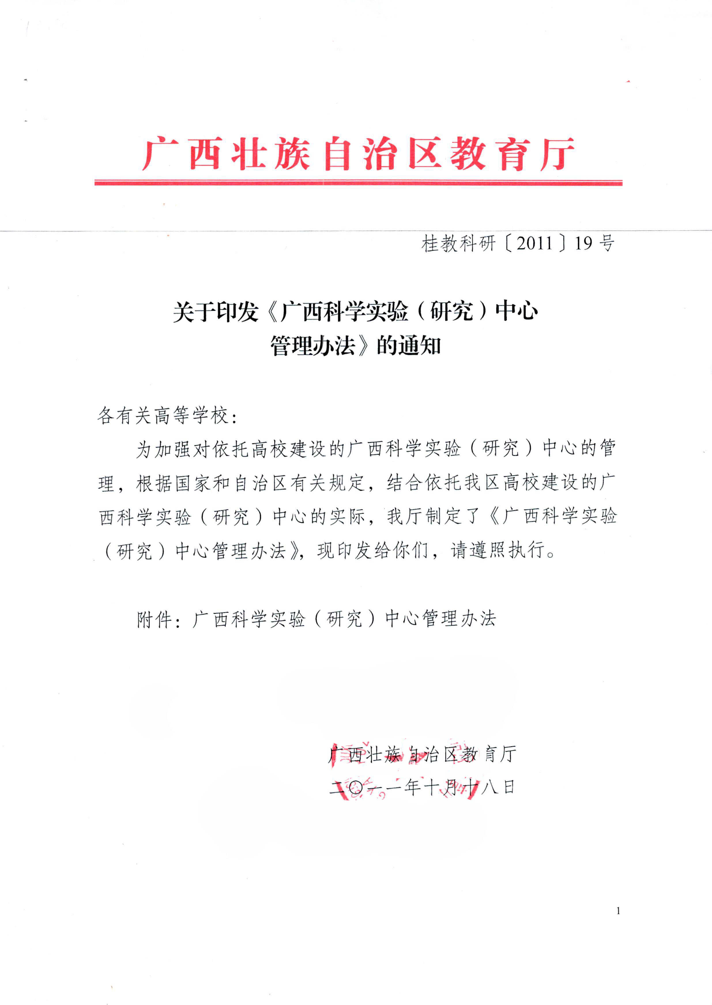 桂教科研〔2011〕19号:关于印发《广西科学实验(研究)中心管理办法》的通知