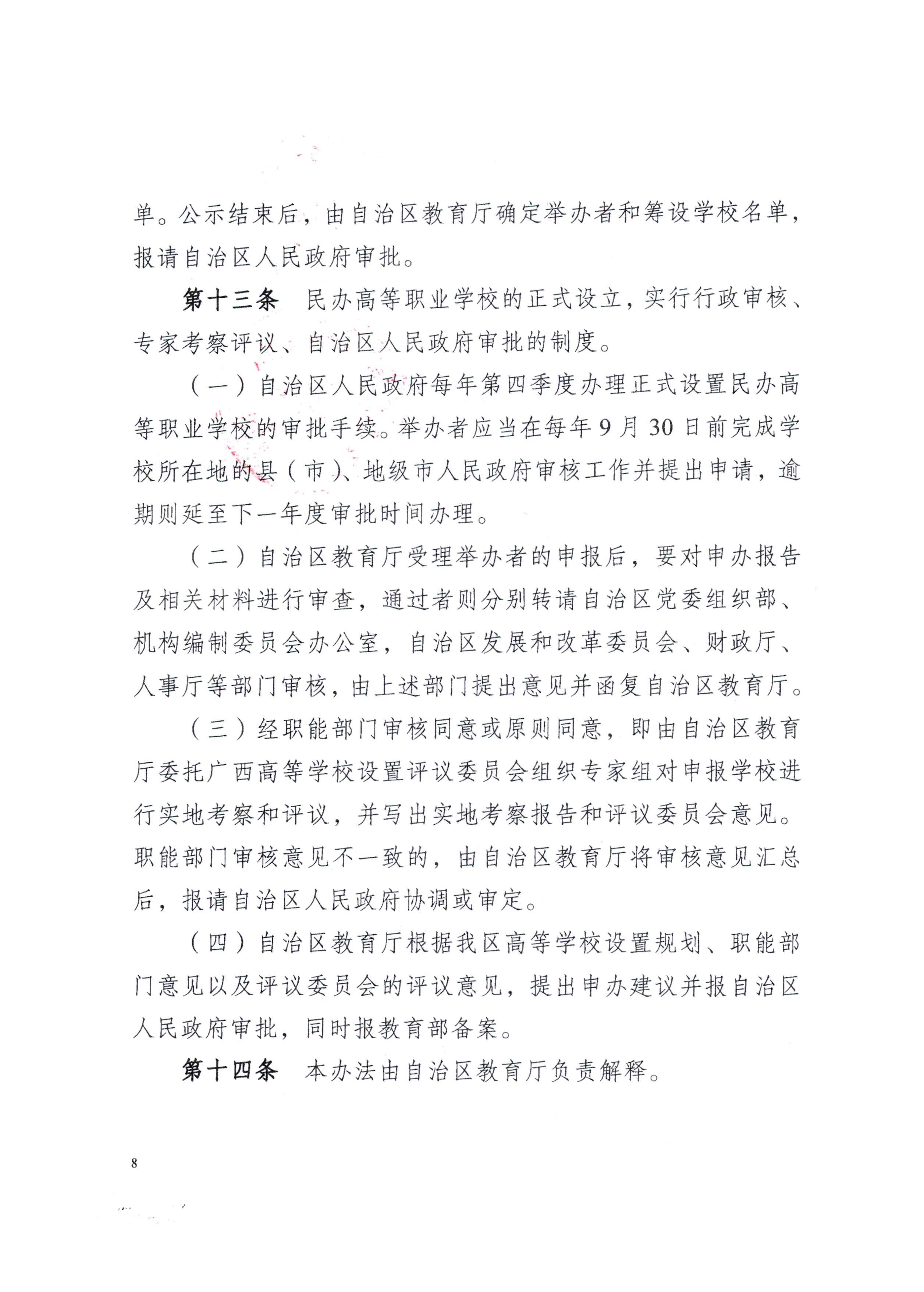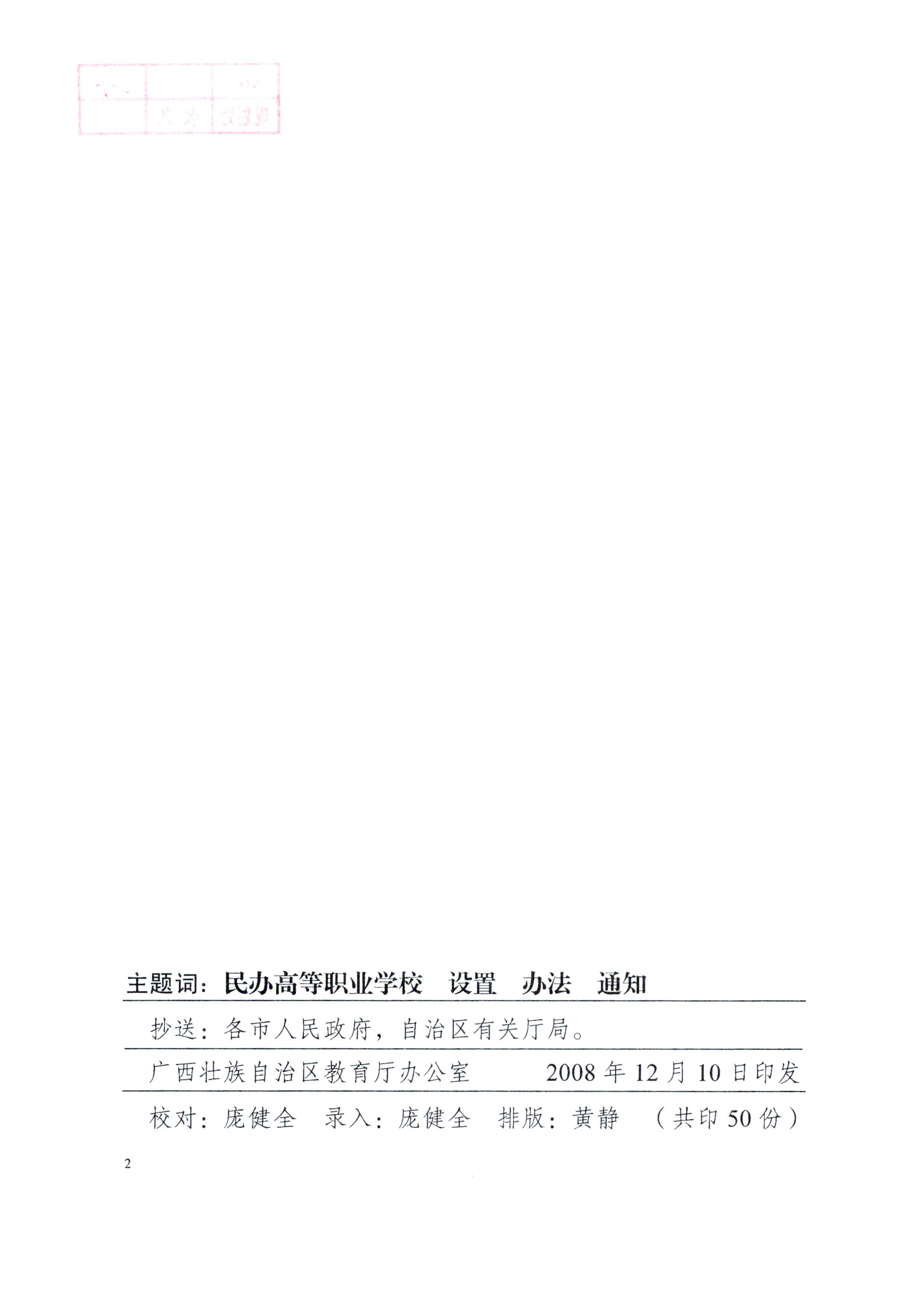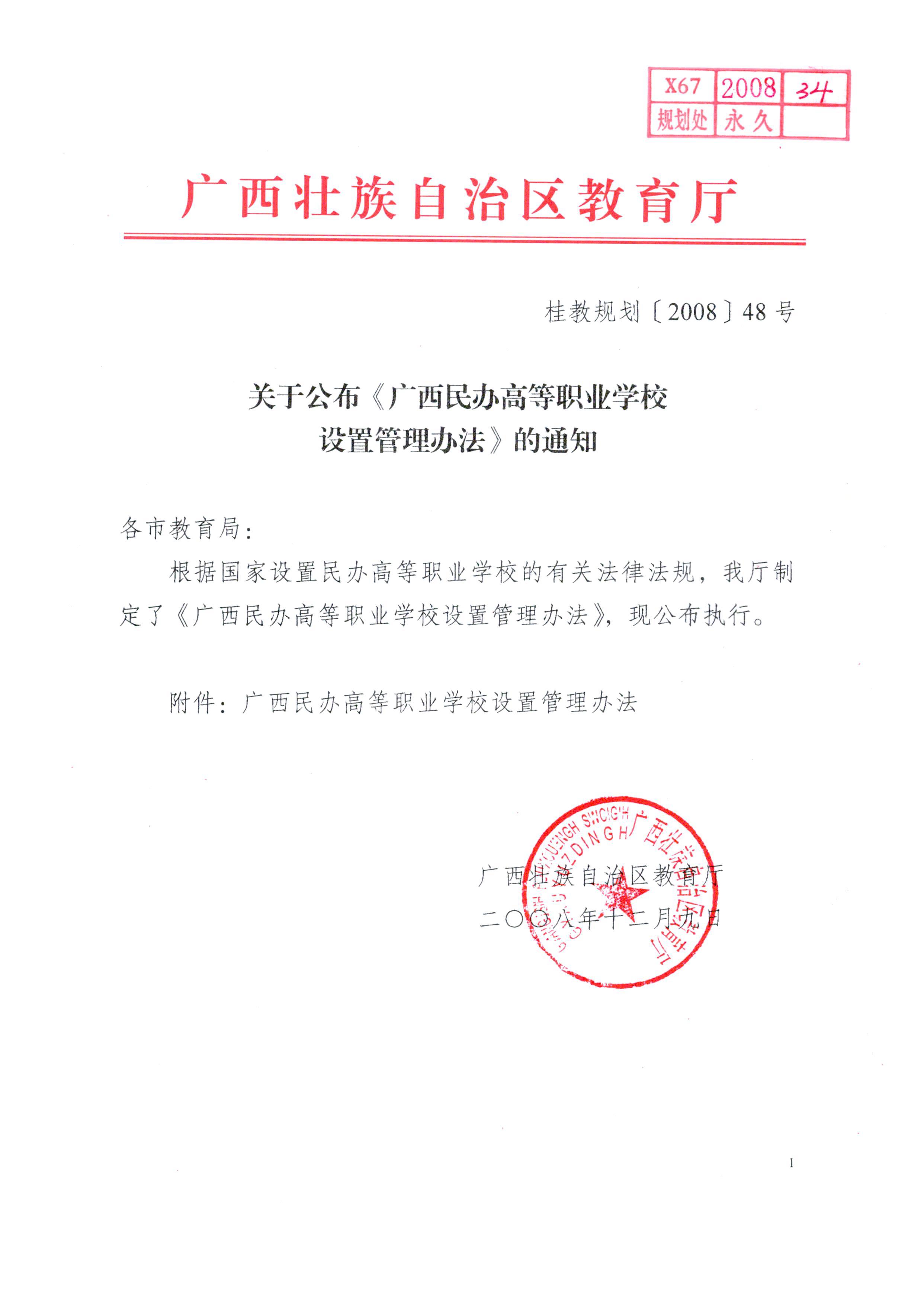 桂教规划〔2008〕48号:关于公布广西民办高等职业学校设置管理办法的通知