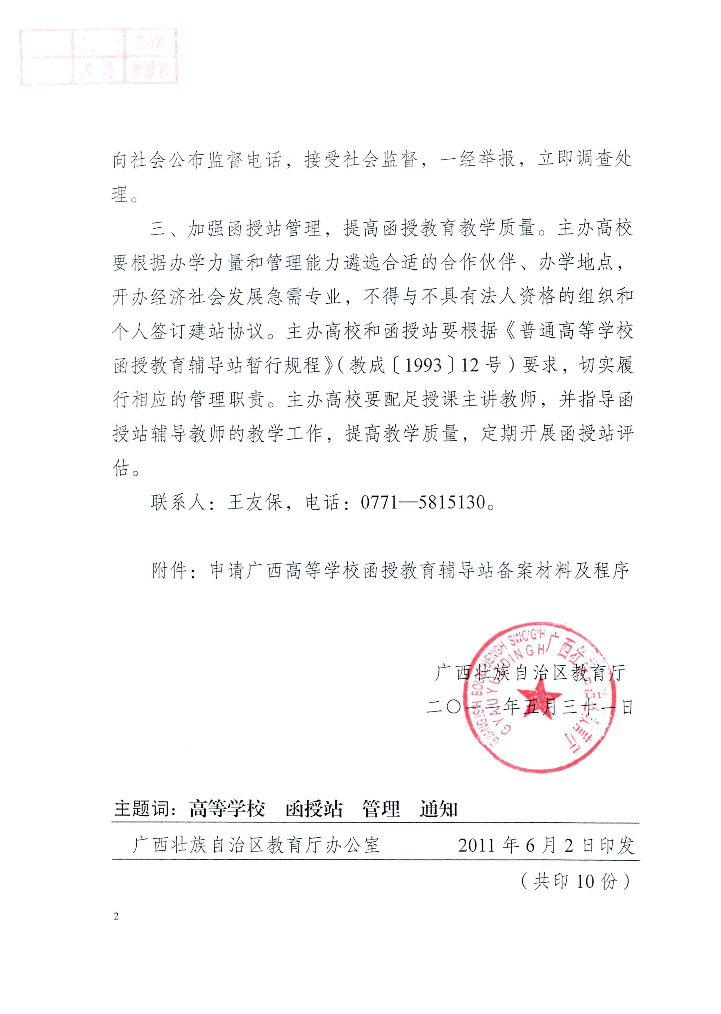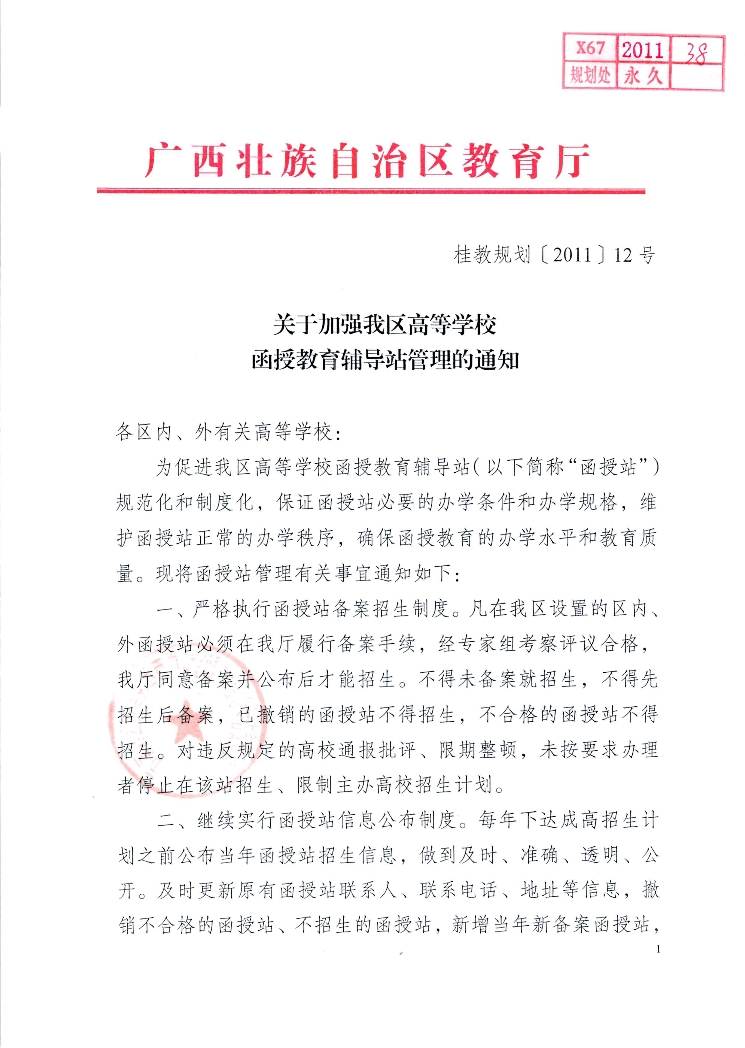 桂教规划〔2011〕12号:关于加强我区高等学校函授教育辅导站管理的通知