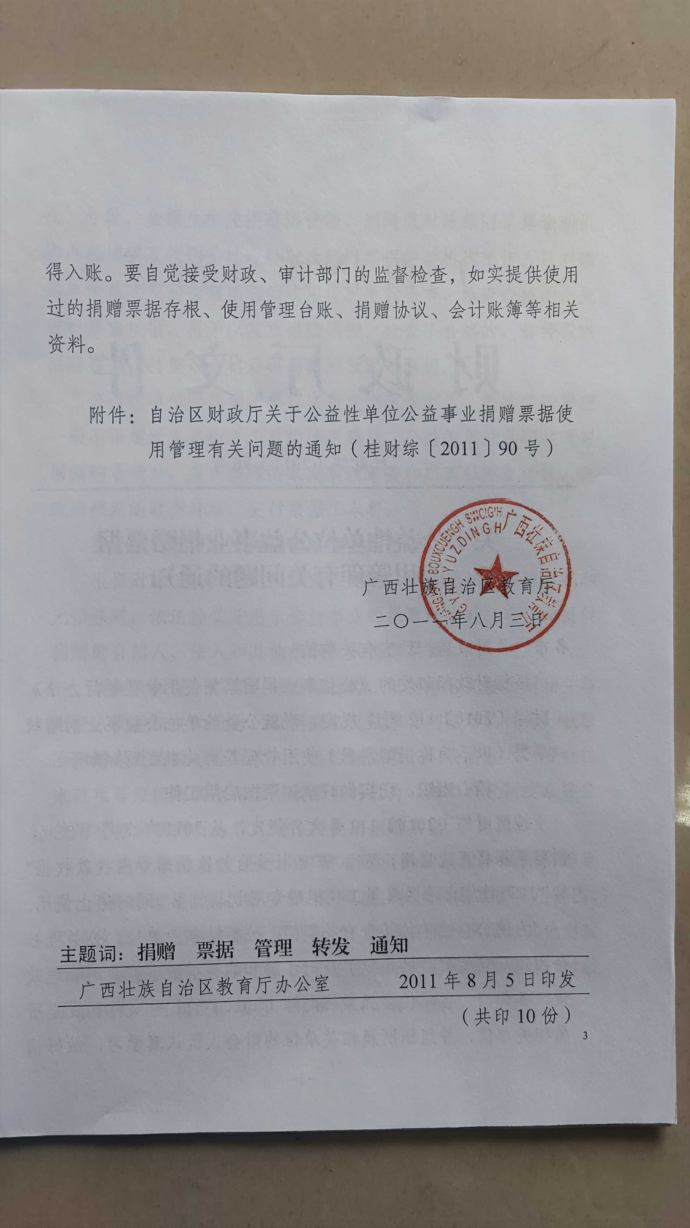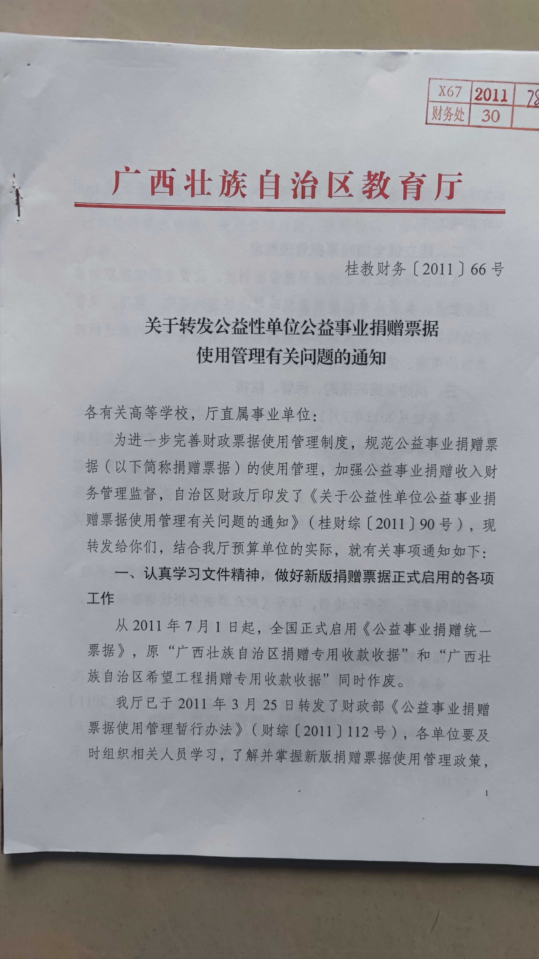 桂教财务〔2011〕66号:关于转发公益性单位公益事业捐赠票据使用管理有关问题的通知