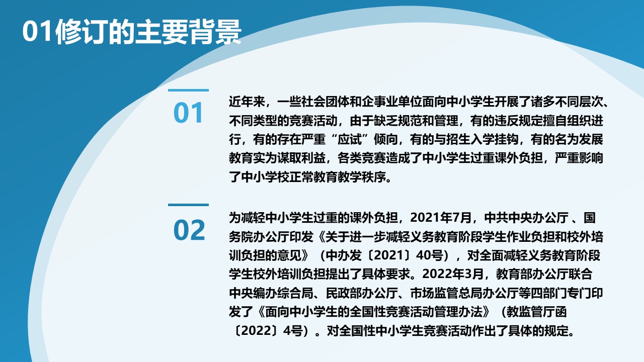 面向中小学生的全区性竞赛活动管理办法政策解读