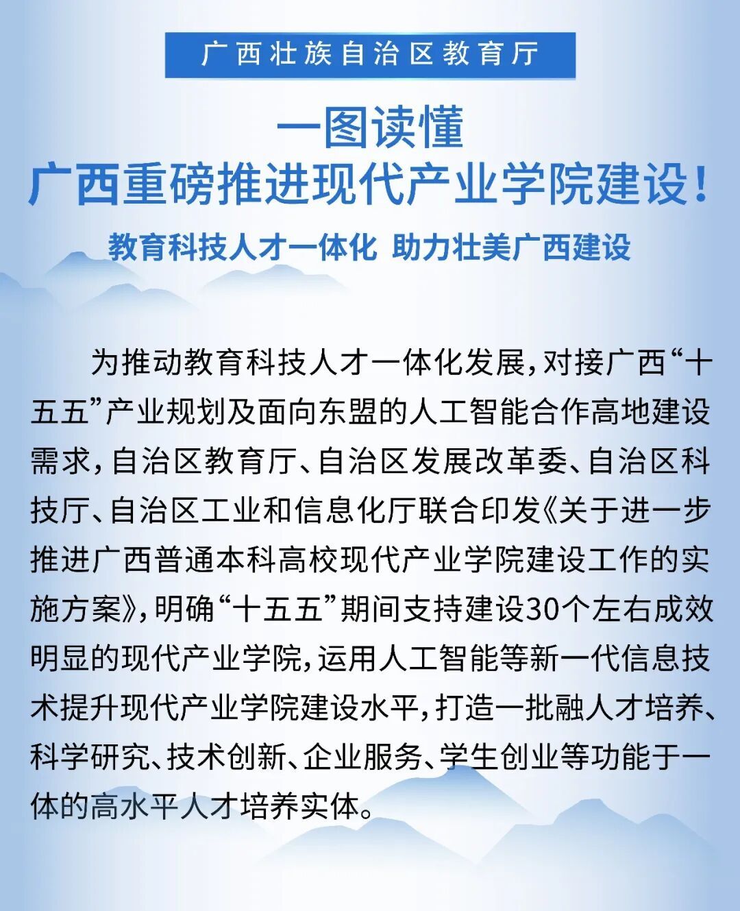 “攀高峰、强特色”丨一图读懂广西重磅推进现代产业学院建设!