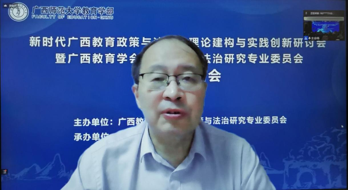 2021月12月4日至5日,“新时代广西教育政策与法治的理论建构与实践创新”研讨会暨广西教育学会教育政策与法治研究专业委员会第一届年会在广西桂林顺利召开,本次大会由广西教育学会教育政策与法治研究专业委员会主办,广西师范大学教育学部和广西民族教育发展研究中心承办。会议旨在围绕新时代广西教育政策与法治建设,集聚教育领域的专家学者与一线教育工作者经验与智慧,探索教育政策与法治领域的理论与实践创新。本次会议云集了线上线下350余名教育领域的专家学者、学校管理者、一线教师和研究生。