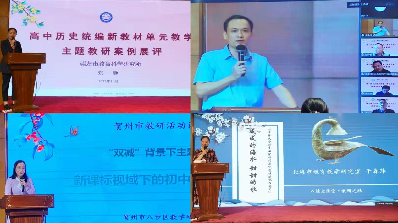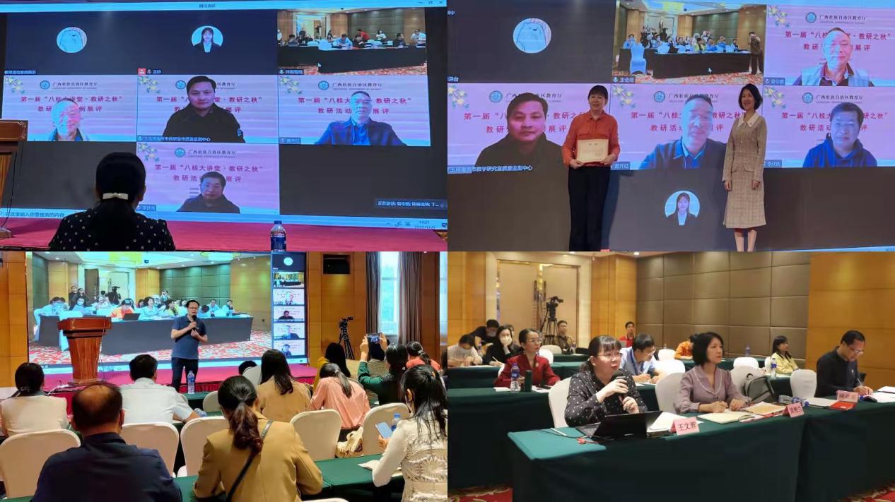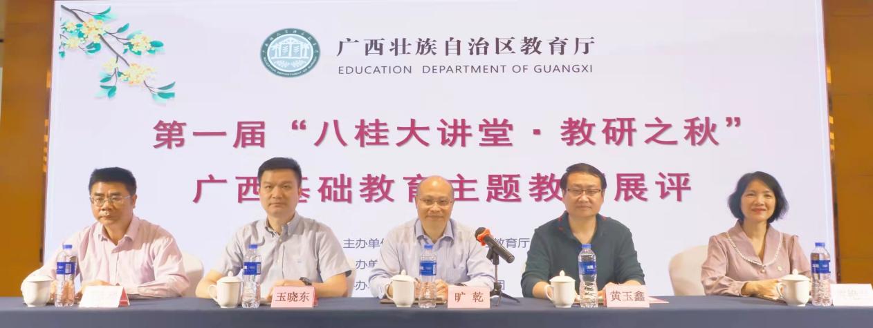 2022年11月9日—10日,第一届“八桂大讲堂·教研之秋”——广西基础教育系列主题教研展评活动在南宁市举行。本次活动由广西壮族自治区教育厅主办,广西教育研究院承办,广西出版传媒集团协办。广西教育研究院旷乾院长,黄艳兰副院长,自治区教育厅基础教育处黄玉鑫副处长以及广西出版传媒集团教材有限公司玉晓东总经理出席了活动开幕式。旷乾院长在开幕致词中指出,刚刚召开党的第二十次全国代表大会报告提出,要加快建设教育强国,加快建设高质量教育体系,发展素质教育,促进教育公平。为落实党的二十大精神,提高我区基础教育教研水平,自治区教育厅组织了第一届广西基础教育系列主题教研展评活动。这次活动规格高、范围广、影响力大,要坚持客观公正、实事求是的原则,扎实开展展评活动,积极探索教学方式改革,促进教研转型升级,强化教研引领示范,扩大辐射效应。