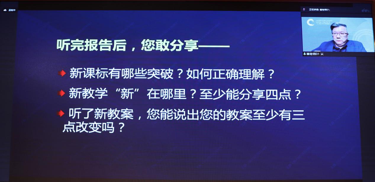在专家主题讲座中,华东师范大学课程与教学研究所崔允漷教授就新课标、新教材、新课程等内容与现场及线上的老师作交流分享。崔教授围绕新课标在核心素养、学业质量的两大突破,阐述新教学应坚持素养导向、强化学科实践、推进综合学习、落实因材施教,探索新时代课堂教学的“大单元教学”和“单元学历案”改革。崔教授以纲举目的理论阐释,引领我区中小学教师和教研员更新教学、教研理念,思考新时代课堂教学的新样态和新做法,现场和线上参会教师深感受益。
