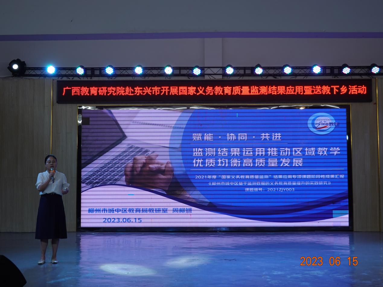 柳州市城中区教研室周柳娥副主任作《赋能·协同·共进:监测结果运用推动区域教学优质均衡高质量发展》主题讲座,介绍了城中区优化区域教育生态的做法和成效。
