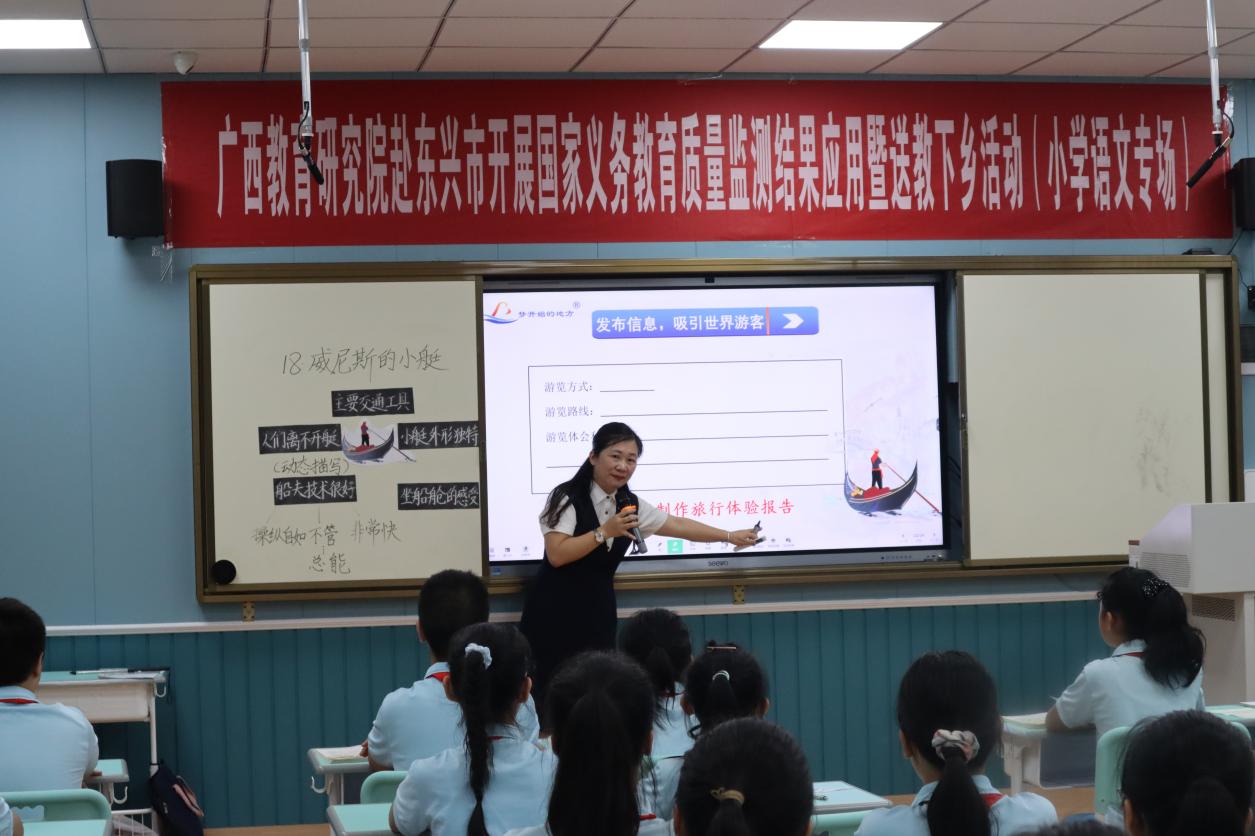 南宁市滨湖路小学安玲老师送教《威尼斯的小艇》第一课时。她以“旅行体验官游览威尼斯”的学习情境设计听、说、读、写等语文实践活动,引导学生在情境中学习动态描写的表达效果。
