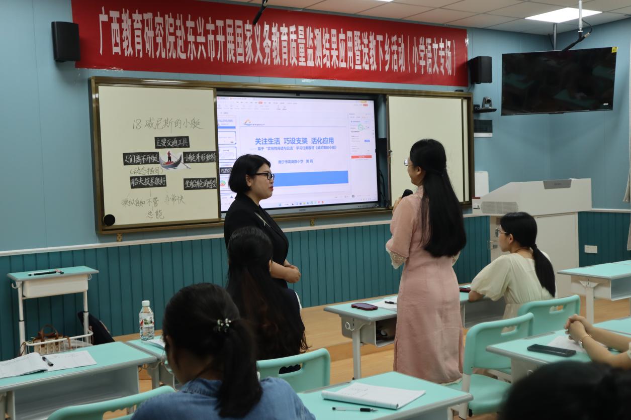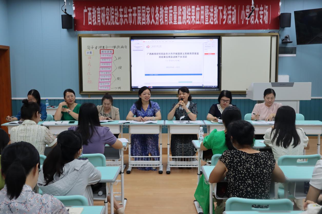 本次东兴市边境地区送教活动围绕推进国家义务教育质量监测结果应用的主要目标来开展,有监测结果解读、经验分享、课堂教学现状调研、课堂教学分析诊断、展示交流、专题指导(专题报告和交流研讨)等环节。活动的专家团队由道德与法治、语文、数学、科学、物理、生物等8个学科组成,来自南宁和柳州的16位教研员和11位送教教师分别赴东兴市第一小学、实验学校、北仑河中学等5所中小学,共展示了研讨课8节、作主题讲座10场、听评课8节及进行主题研讨15次,受到了当地一线教师广泛认可,他们纷纷表示希望这样的活动开展得越多越好。下一步,广西教育研究院的系列送教下乡活动将继续加强整体规划、坚持问题导向、建立常态化的交流帮扶机制,注重学科核心素养培养,努力做好以教研帮扶提升边境教学质量的工作。