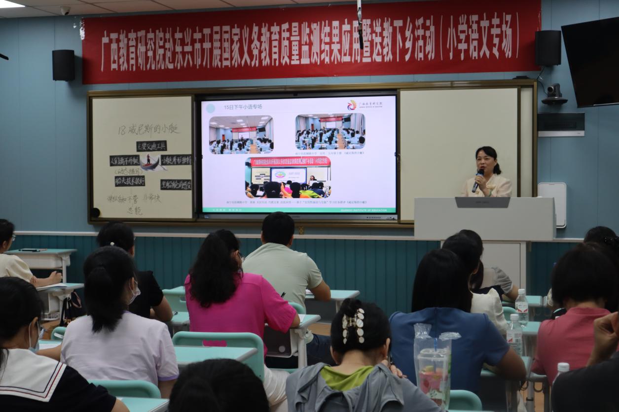 广西教育研究院语文教研员李艳萍老师以题为《在学科实践中追寻语文教学的诗和远方》的专题讲座作活动总结。结合历年国家义务教育质量监测结果分析,从课标研读、学科实践、团队建设、教研协同四个方面谈教学改进策略,鼓励教师们通过聚焦“高效实践”“协同成长”以探寻语文教学的更佳境界。