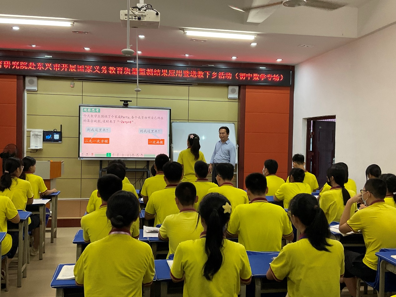 东兴市北仑河中学苏立雄副校长展示了一节学生较难理解的新授课《一次函数与方程、不等式》。