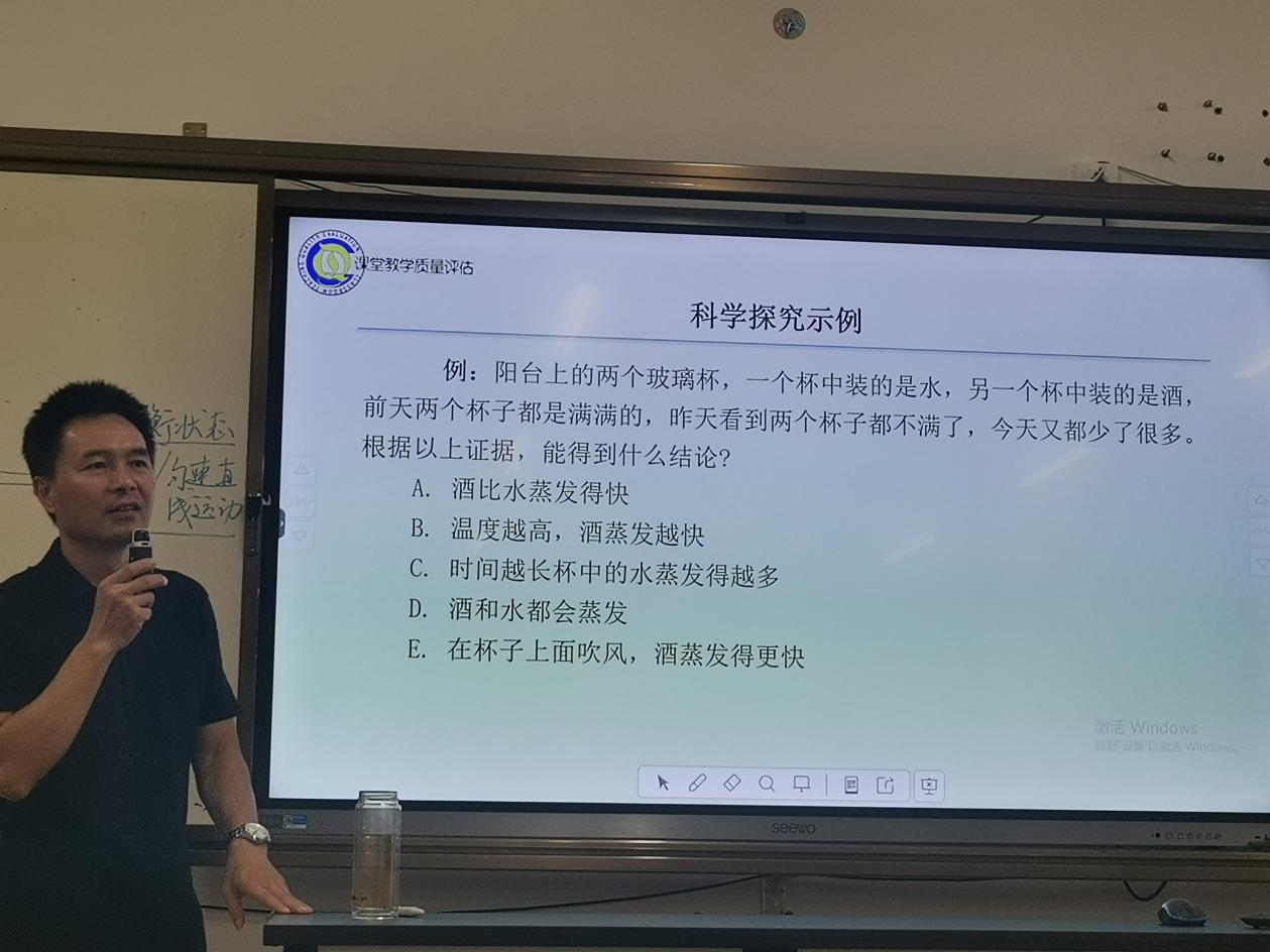 柳州市教育科学研究所莫海浪老师作主题讲座《质量监测视角下的物理教学》,他围绕国家义务教育质量监测科学监测对物理教学的导向功能,阐述了科学学习质量监测指标凸显初中物理学科核心素养的观点,就优化设计教学情境,培养学生科学思维和科学探究的教学策略提出了改进建议。