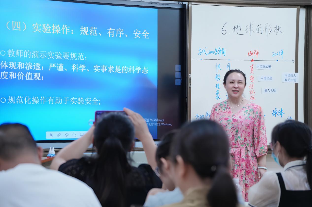 南宁市友爱小学校长、科学教师罗睿以科学探究为主题,为东兴市实验学校的学生送教《地球的形状》,学生在模仿前人的探究过程中加深了对地球形状的认识,课后学科中心组成员、南宁市青秀区教育局教研室小学科学教研员黄贤群结合课例作《科学研究实践活动的有效开展》专题讲座,在新课标的指导下,结合现实案例,从十五个细节为老师们提供了有效开展科学探究的具体策略和方法。活动受到参与老师的一致好评。