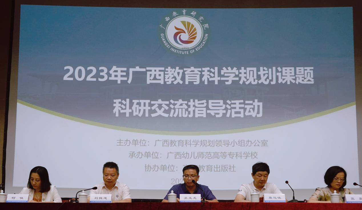 为进一步加强我区基础教育教科研队伍建设,创新教科研工作方式,提升全区中小学教师队伍的教学研究能力和水平,7月10日由广西教育科学规划领导小组办公室主办、广西幼儿师范高等专科学校承办、高等教育出版社协办的2023年度广西教育科学规划课题科研交流指导活动在南宁市顺利进行。活动开幕式由广西教育科学规划领导小组办公室何佳同志主持,广西教育研究院吴玉龙副院长、广西幼儿师范高等专科学校刘揖建副校长、高等教育出版社广西教学服务中心张雯副主任、南宁师范大学莫运佳研究员出席了开幕式。