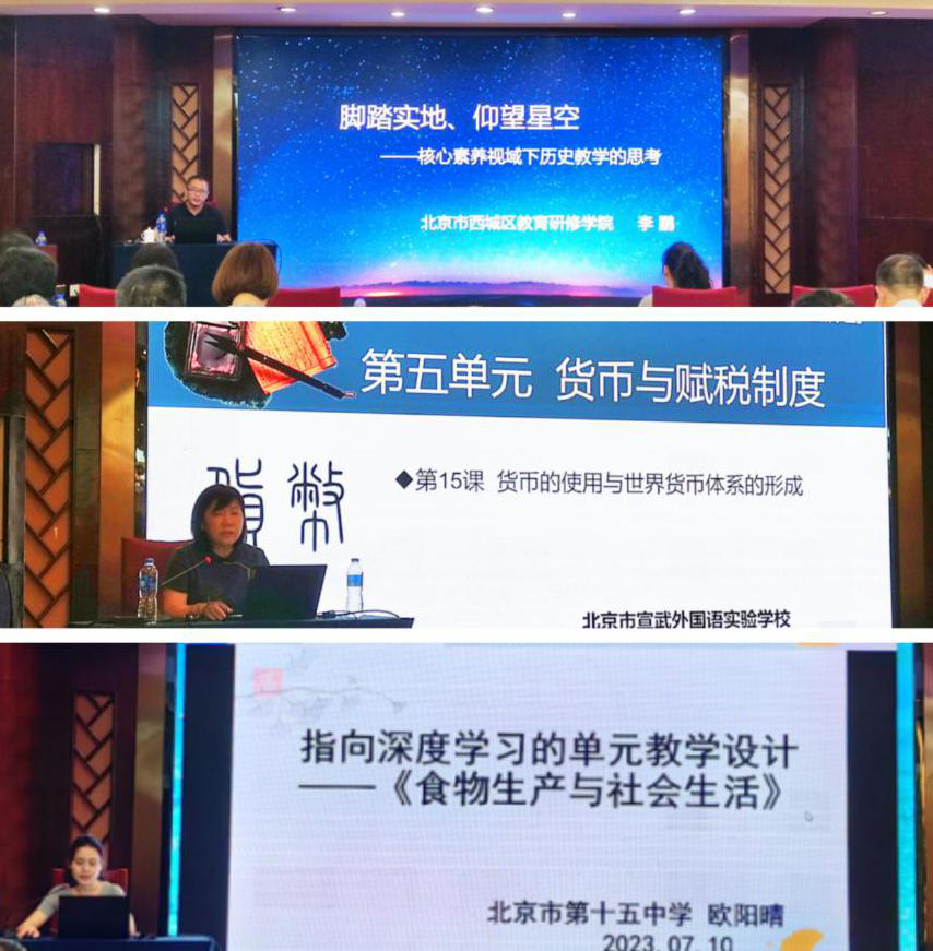 ▲保继光教授作讲座;孙泰、李大永和董武等老师做课例展示