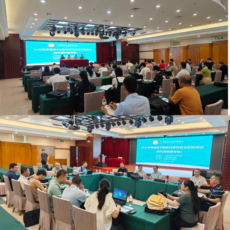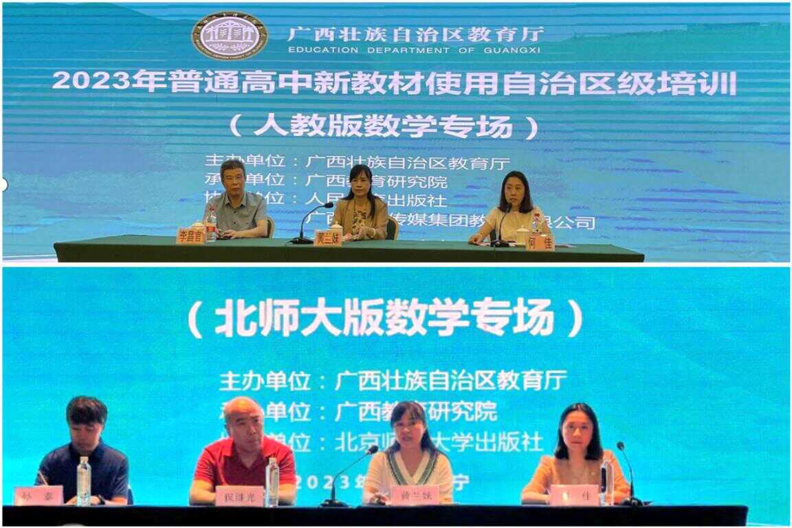 2023年7月10日-22日,广西教育厅在南宁市组织开展了普通高中新教材使用自治区级培训工作。本次培训工作由广西教育研究院承办,人民教育出版社、科学教育出版社、外语教学与研究出版社等全区14个设区市不同教材使用版本相应的15个出版社以及广西出版传媒集团教材有限公司协办。广西教育研究院高中学段各学科教研员,区内外近百名专家,自治区有关学科教学指导专业委员会委员、区内高中学段各学科近1800名教研员、骨干教师参与了培训。