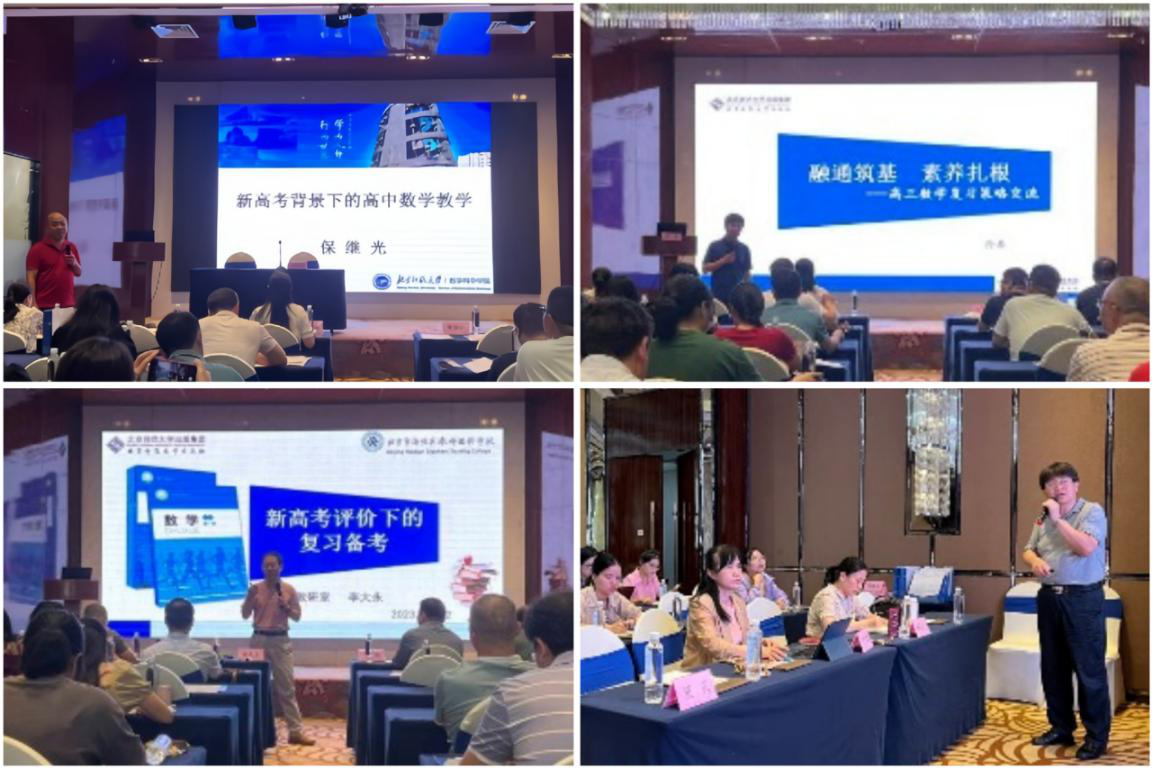 高中数学学科新教材使用培训分为人教版和北师大版两场。在人教版培训专场,浙江台州中学正高级教师李柏青老师作《单元整体复习策略的思考与实践》说课展示,并阐述课例设计《条件概率》《圆锥曲线中斜率和或积为定值的问题》。在北师大版培训专场,北京师范大学保继光教授作《新高考背景下的高中数学》主题讲座,广西教育研究院数学教研员黄兰妹老师作《核心素养背景下的高三数学教学思考》主题讲座,北京丰台第二中学孙泰老师、海淀区进修学校数学教研员李大永老师、昌平区第一中学董武老师分别作说课展示《融通筑基素养扎根》《新高考评价下的复习备考》以及《深化数学基础,强调理性思维,发展关键能力》。区内参培教师在专家指导下进行分组磨课,并推选代表展示汇报课例设计。本次培训活动助推参训老师转变教学理念、激活潜能,将有力地带动普通高中教育教学质量提升。